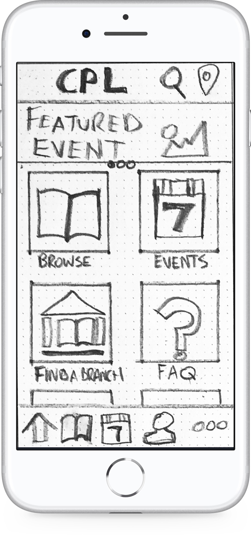 I designed a set of wireframes that utilized a launchpad-style home screen and focused on the event search and filter process. These screens were then integrated into an Axure prototype for usability testing.